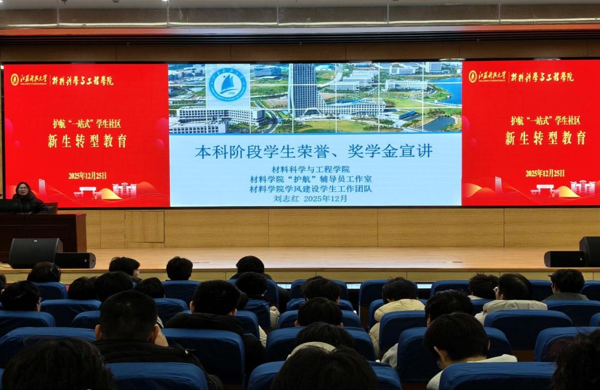 為扎實(shí)推進(jìn)學(xué)風(fēng)建設(shè),引導(dǎo)2025級(jí)新生明確學(xué)業(yè)目標(biāo)、科學(xué)規(guī)劃大學(xué)生涯,12月25日,材料學(xué)院在“護(hù)航”一站式學(xué)生社區(qū)開(kāi)展學(xué)風(fēng)專(zhuān)題講座暨學(xué)長(zhǎng)學(xué)姐經(jīng)驗(yàn)分享會(huì)。輔導(dǎo)員劉志紅、涂藝凡,24級(jí)研究生、24級(jí)材成專(zhuān)業(yè)代表和25級(jí)全體本科生參加活動(dòng)。