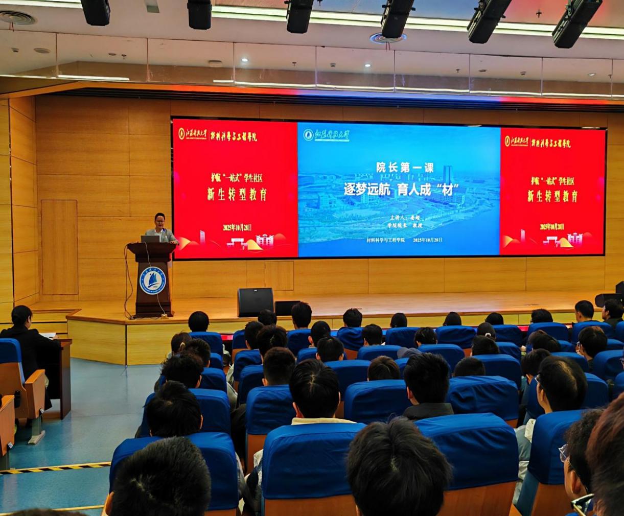 為幫助2025級新生實現(xiàn)角色轉(zhuǎn)變,10月28日,材料學院在護航“一站式”學生社區(qū)開展院長第一課暨新生轉(zhuǎn)型教育系列活動。學院院長晏超、黨委副書記楊海濤、25級輔導員和一站式學生社區(qū)530名本科新生參加活動。