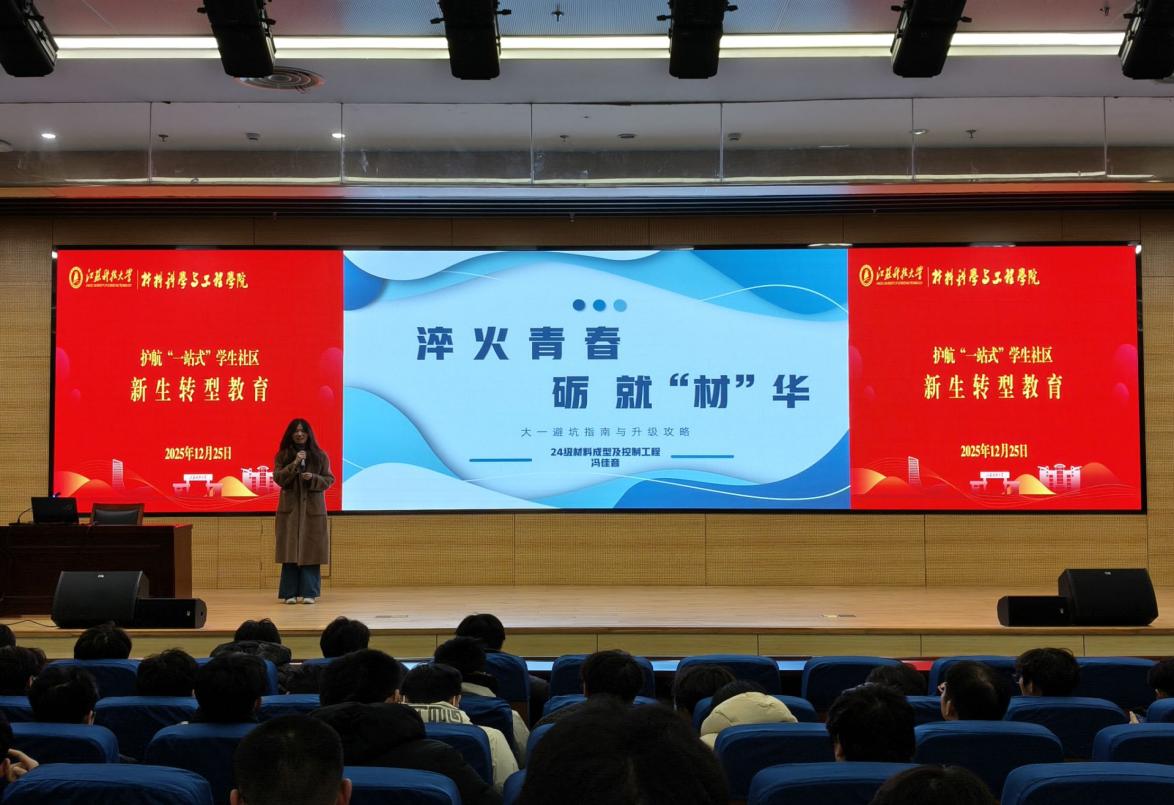 為扎實(shí)推進(jìn)學(xué)風(fēng)建設(shè),引導(dǎo)2025級(jí)新生明確學(xué)業(yè)目標(biāo)、科學(xué)規(guī)劃大學(xué)生涯,12月25日,材料學(xué)院在“護(hù)航”一站式學(xué)生社區(qū)開(kāi)展學(xué)風(fēng)專(zhuān)題講座暨學(xué)長(zhǎng)學(xué)姐經(jīng)驗(yàn)分享會(huì)。輔導(dǎo)員劉志紅、涂藝凡,24級(jí)研究生、24級(jí)材成專(zhuān)業(yè)代表和25級(jí)全體本科生參加活動(dòng)。