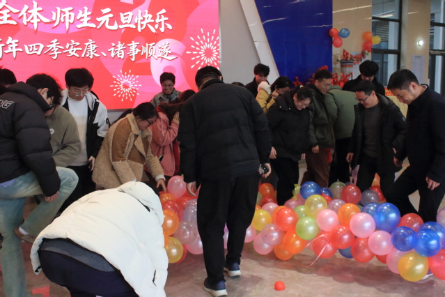 “踩氣球狂歡”將氣氛推向高潮。老師與同學(xué)們一同互動,融入歡樂之中。氣球清脆的爆裂聲與歡笑聲此起彼伏,師生身影交錯、彼此追逐,映照出歡騰的景象。