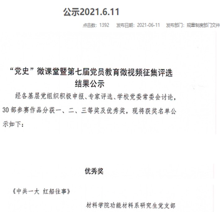 “黨史”微課堂暨第七屆黨員教育微視頻征集評選——優(yōu)秀獎;時間:2021年6月